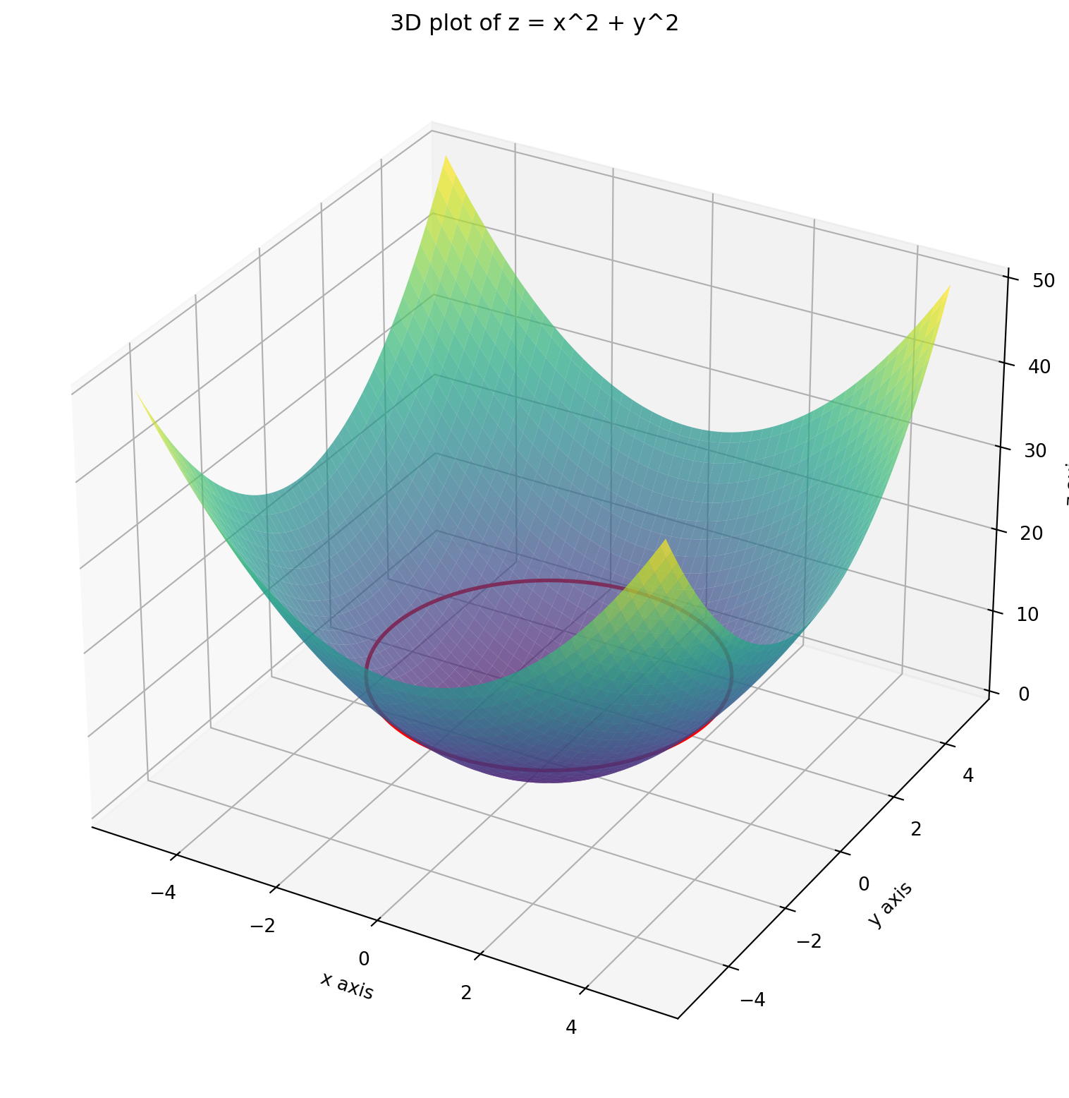 Visualizing functions of two variables can provide deep insights into their behavior. In this post, we will explore how to create 3D surface plots and contour plots using Python’s Matplotlib library. We will use the function \(z = x^2 + y^2\) as our example.